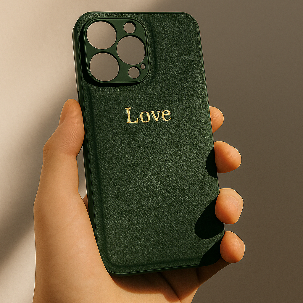 Unsere Lederhülle wird aus hochwertigem, strukturiertem Material gefertigt und mit Ihren Initialen veredelt – jedes Stück ein Unikat.