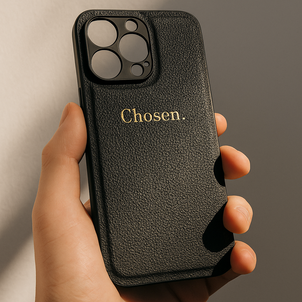 Unsere Lederhülle wird aus hochwertigem, strukturiertem Material gefertigt und mit Ihren Initialen veredelt – jedes Stück ein Unikat.